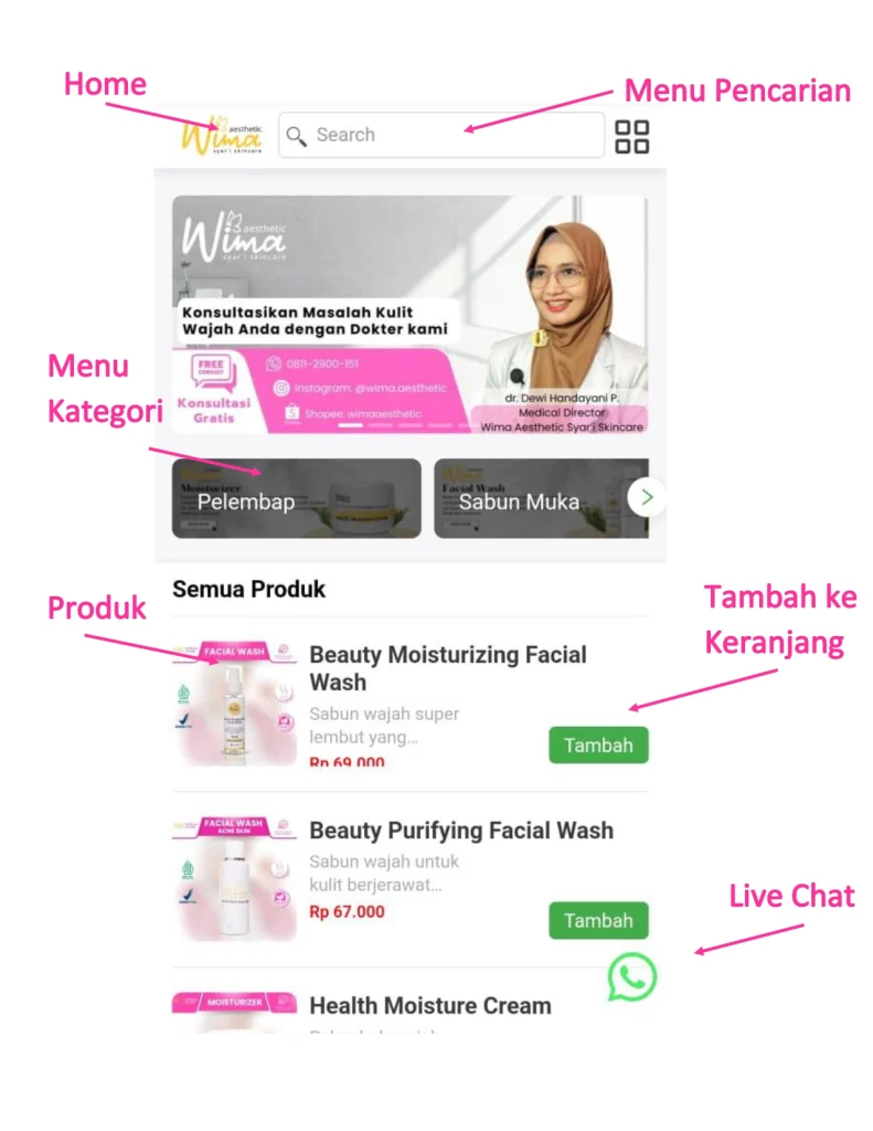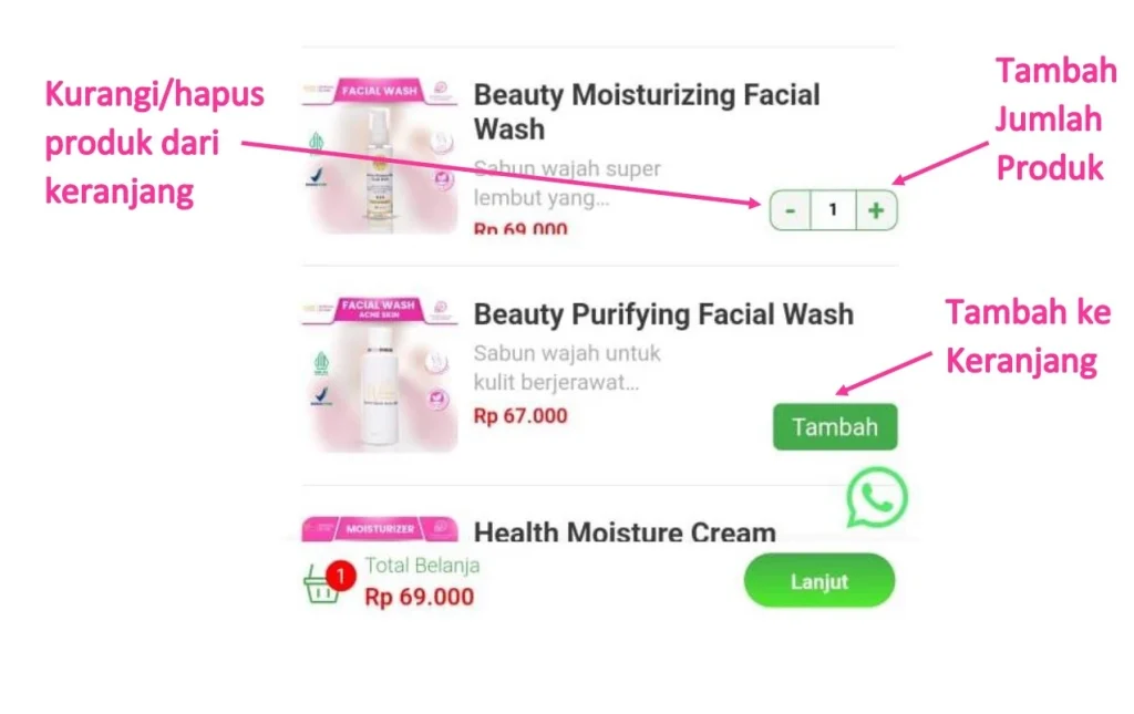 Belanja skincare di Online Store Wima Aesthetic Syar’i Skincare semudah melambaikan tangan! Ikuti langkah-langkah berikut untuk mendapatkan produk skincare favoritmu: