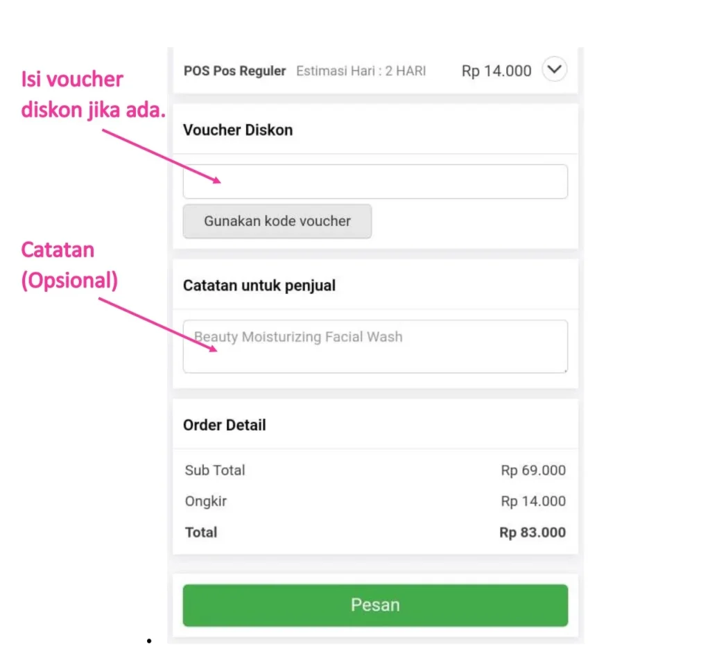- Masukkan Voucher jika kamu memiliki voucher diskon.