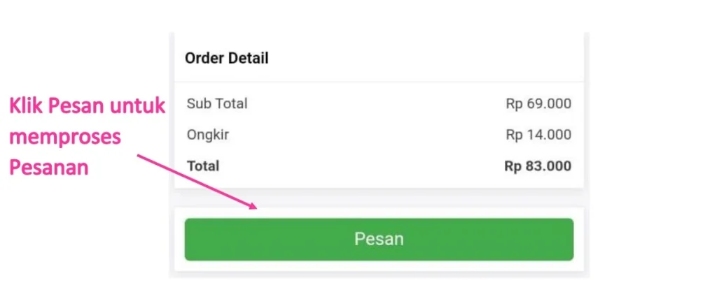 - Klik tombol “PESAN” untuk melanjutkan proses pembelian.