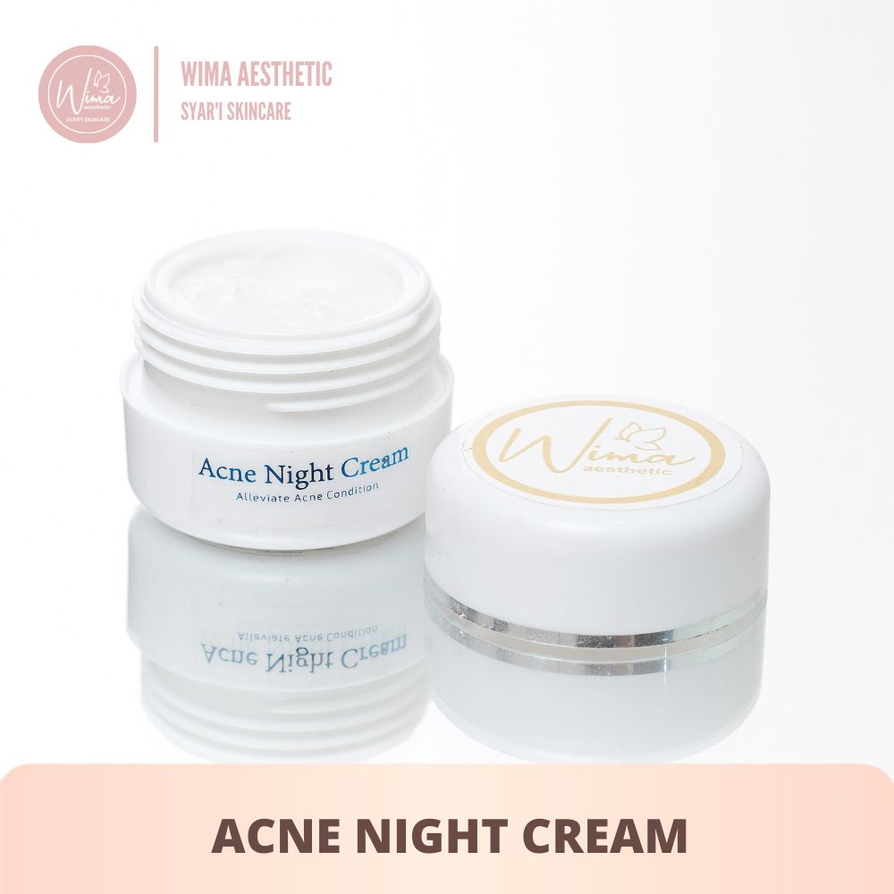 Krim malam dari Wima Aesthetic Syar’i Skincare yang cocok untuk mengatasi masalah jerawat. Diformulasikan khusus untuk kulit Sahabat Shalihah yang berjerawat.