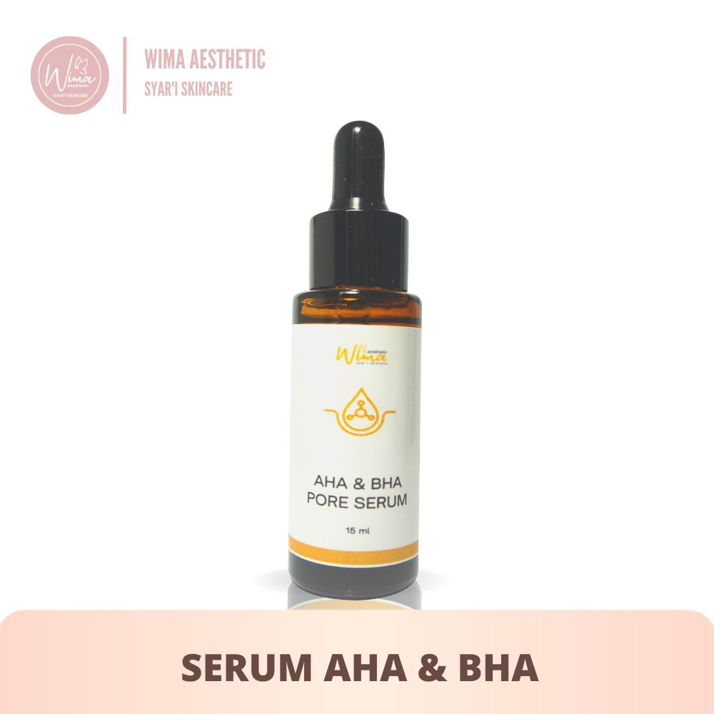 Serum dari Wima Aesthetic Syar’i Skincare yang diformulasikan dan di kombinasi dengan eksfolian AHA dan Salicyl yang berfungsi untuk merawat kulit wajah yang cenderung berjerawat, berkomedo dan berpori besar.